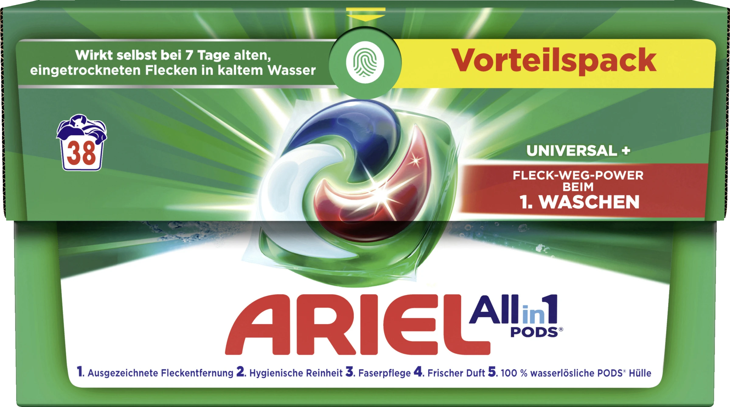 Ariel präsentiert die Allin1 PODS® Waschkapseln Universal+, die jetzt mit einer zusätzlichen roten Kammer ausgestattet und selbst in kaltem Wasser bei 7 Tage alten, eingetrockneten Flecken wirken. Sie wurden für die Kaltwäsche entwickelt und verfügen über einzigartige Technologien wie die COOL CLEAN Technologie.