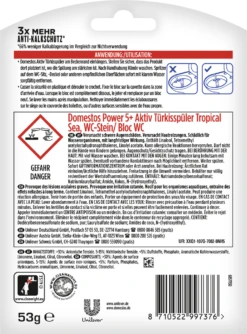 “Achtung: Verursacht schwere Augenreizung. Verursacht Hautreizungen. Schädlich für Wasserorganismen, mit langfristiger Wirkung.Darf nicht in die Hände von Kindern gelangen. Schutzhandschuhe/Augenschutz tragen. BEI KONTAKT MIT DEN AUGEN: Einige Minuten lang behutsam mit Wasser spülen. Eventuell vorhandene Kontaktlinsen nach Möglichkeit entfernen. Weiter spülen. Bei anhaltender Augenreizung: Ärztlichen Rat einholen/ärztliche Hilfe hinzuziehen. BEI BERÜHRUNG MIT DER HAUT: Mit viel Wasser waschen. Ist ärztlicher Rat erforderlich, Verpackung oder Kennzeichnungsetikett bereithalten. Inhalt/Behälter gemäß nationalen Vorschriften der Entsorgung zuführen.”