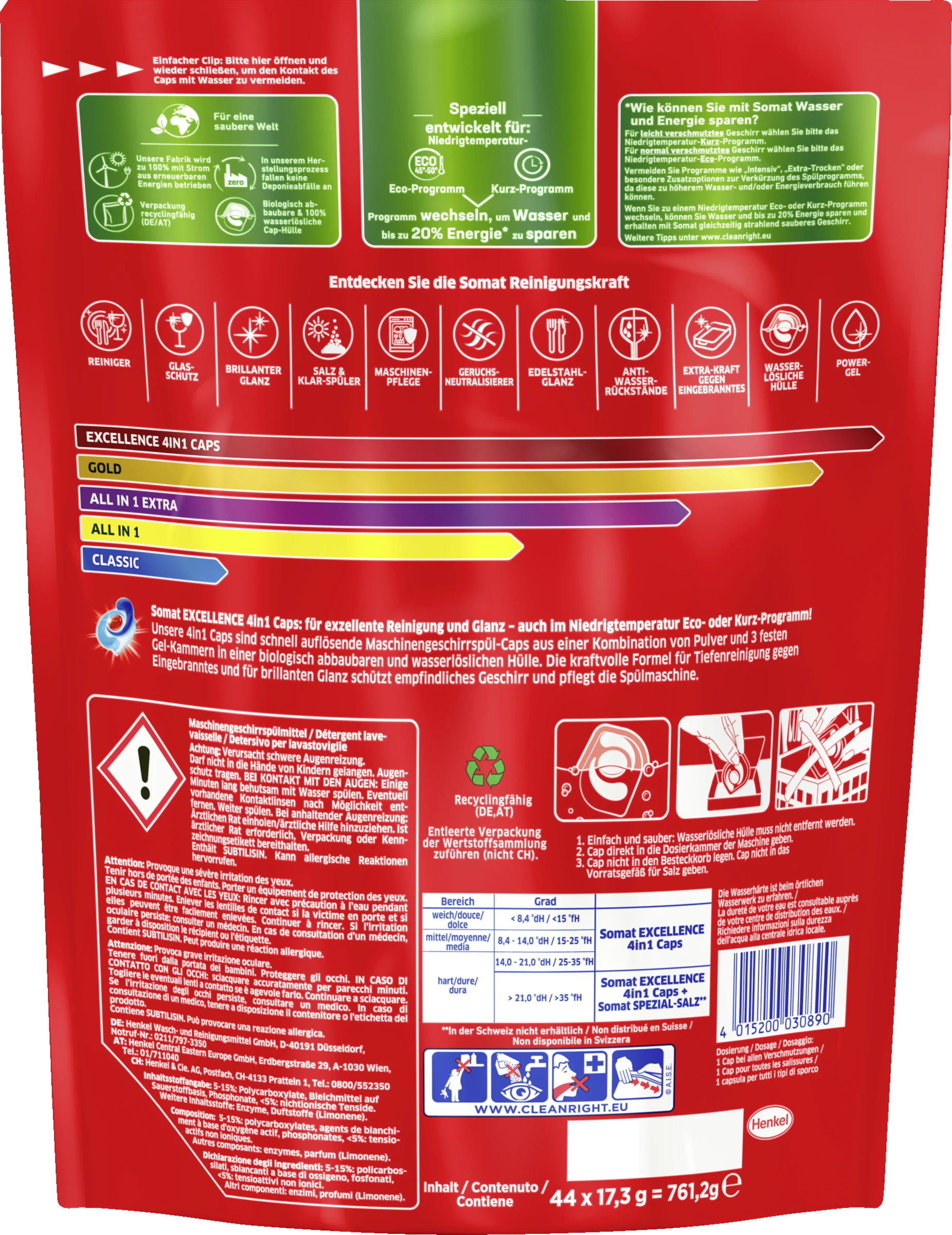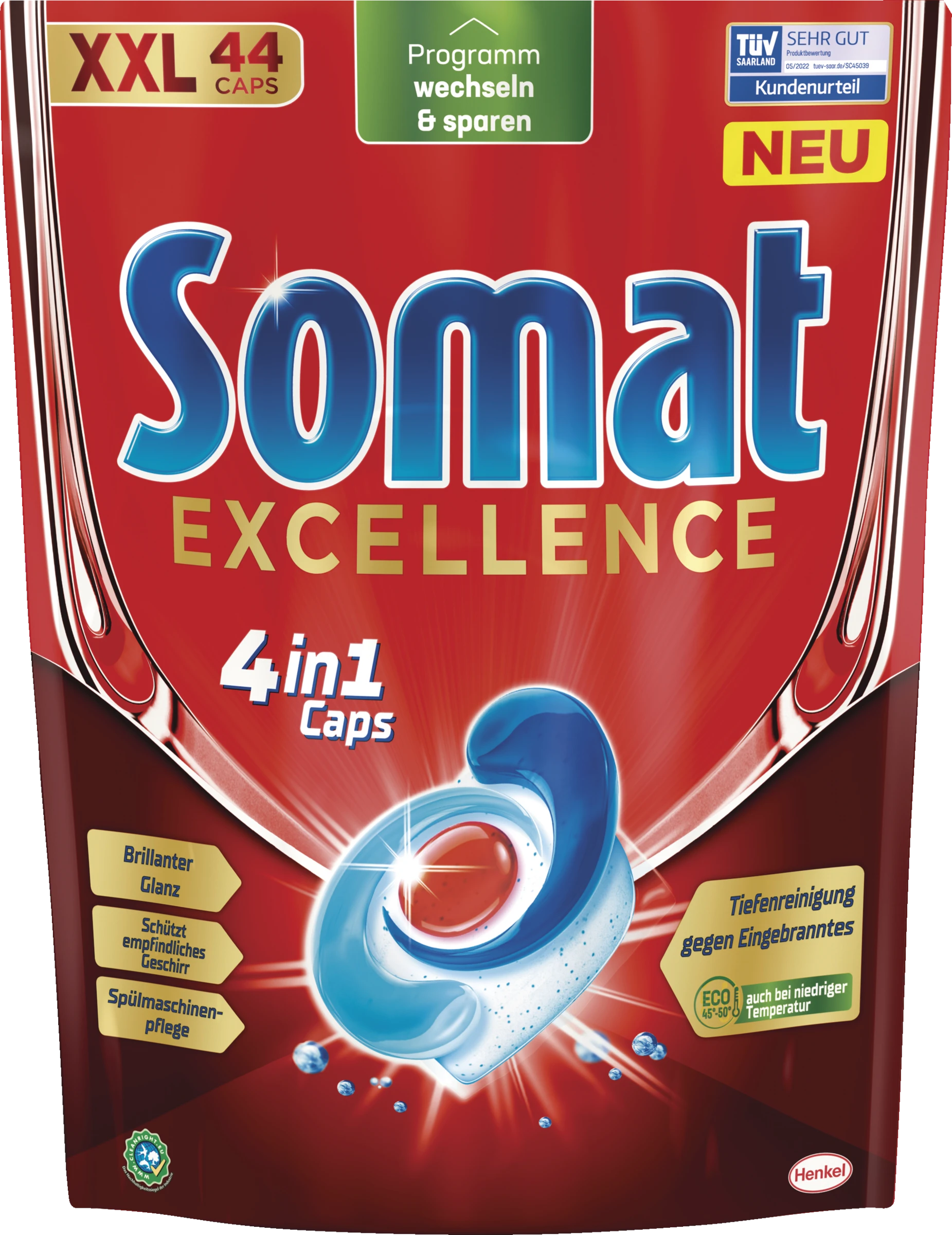 Somat Exellence 4in1 Caps – für exzellente Reinigung, Glanz und Pflege für Geschirr und Maschine