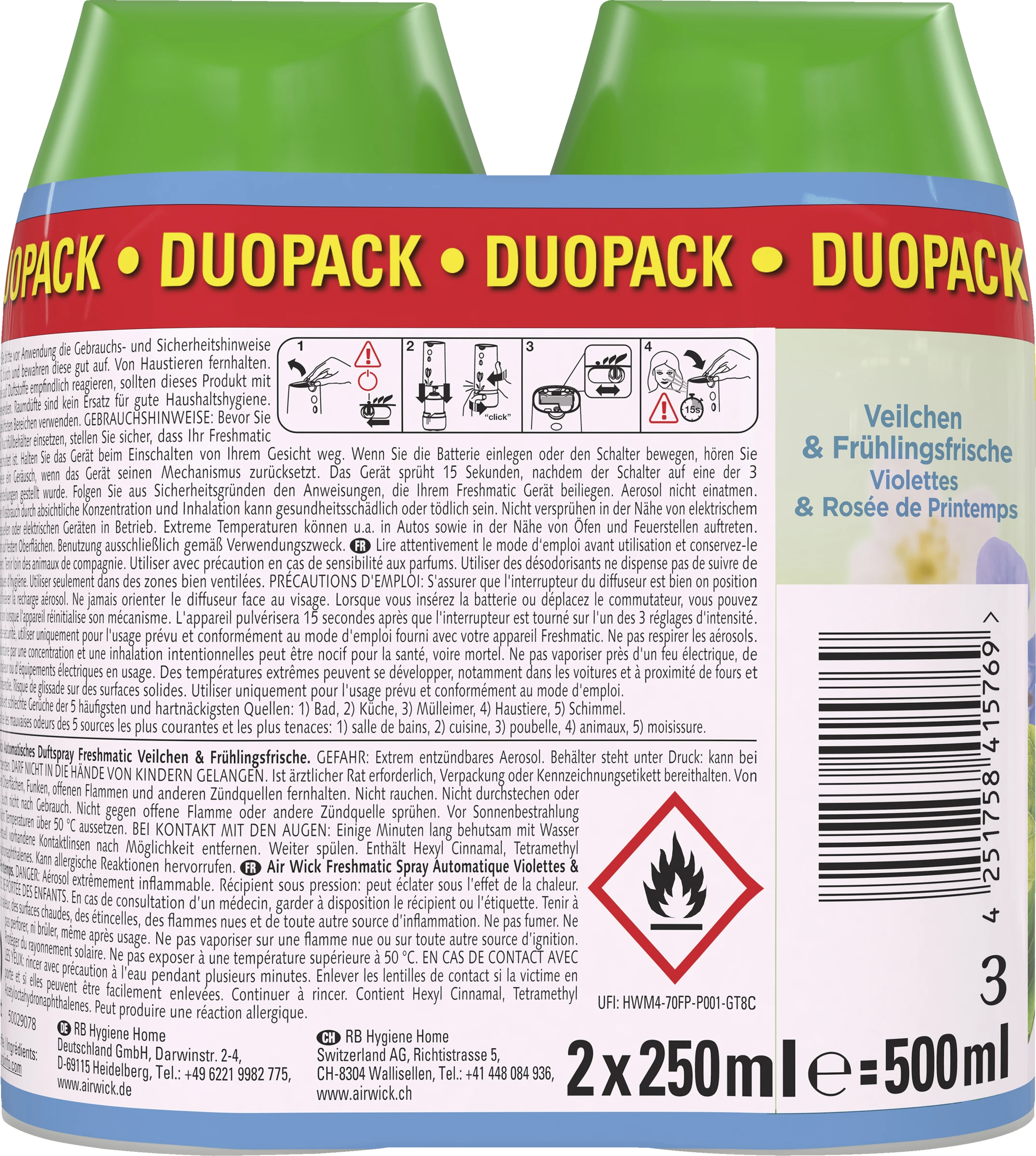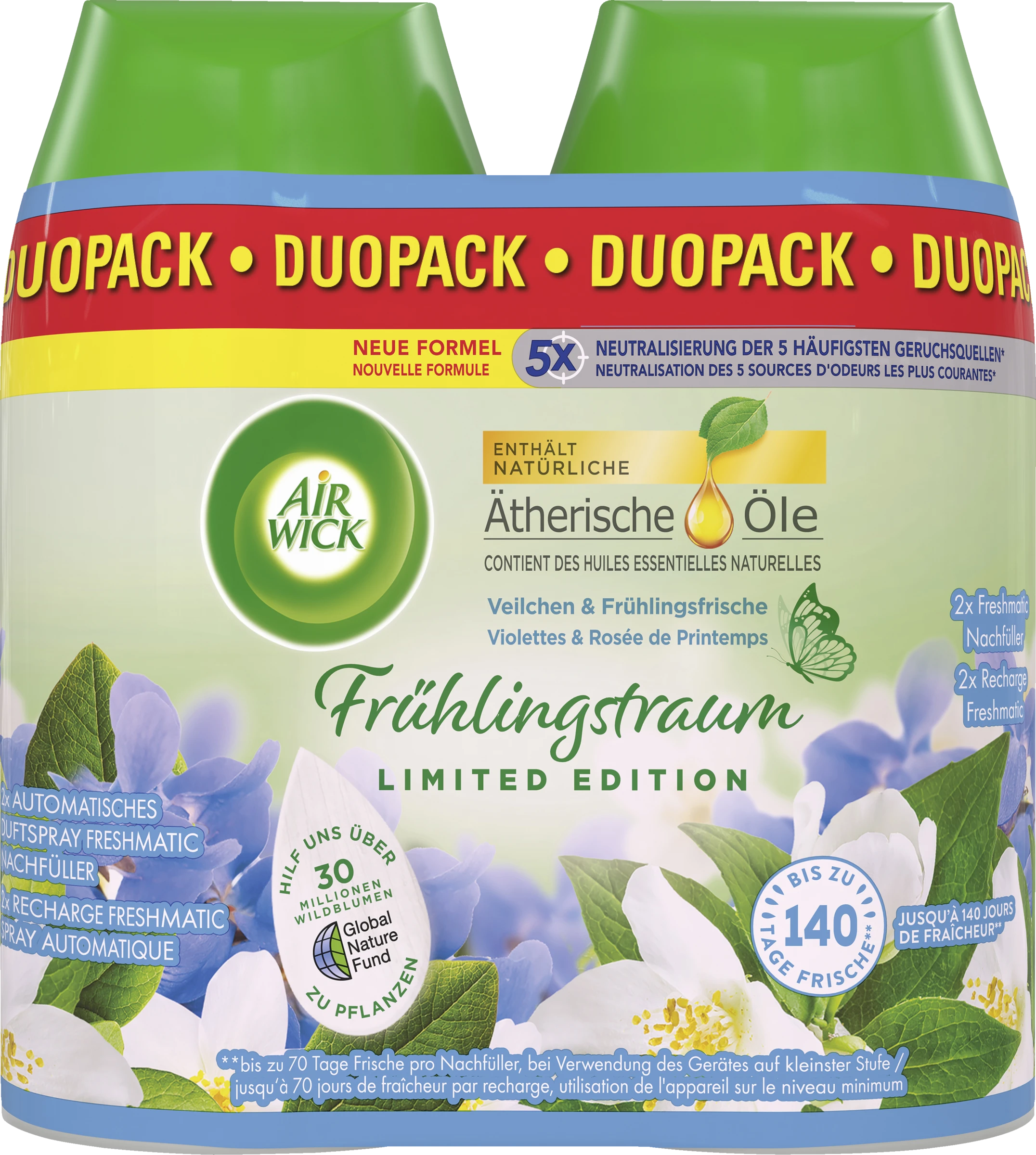 Air Wick Freshmatic Max Nachfüller DUO Veilchen & Frühlingsfrische – Holen Sie sich gute Laune in Ihr Zuhause mit diesem inspirierenden Duft von Veilchen und angenehmer Frühlingsfrische.