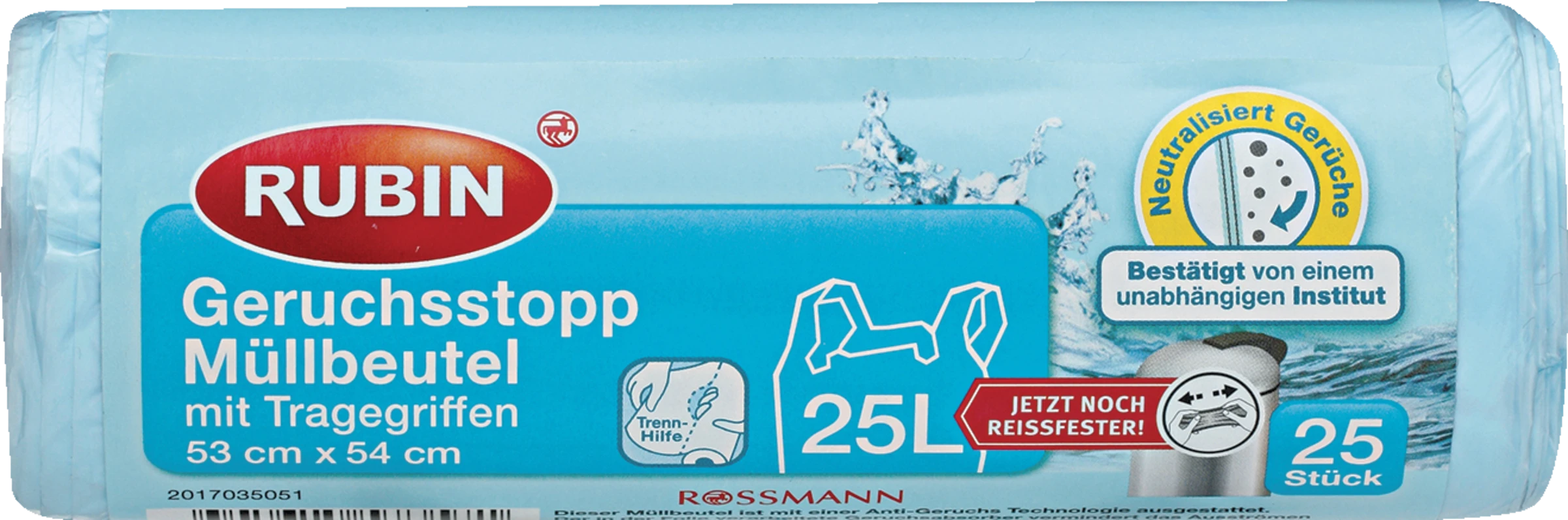 RUBIN Geruchsstopp Müllbeutel mit Tragegriffen 25 l: