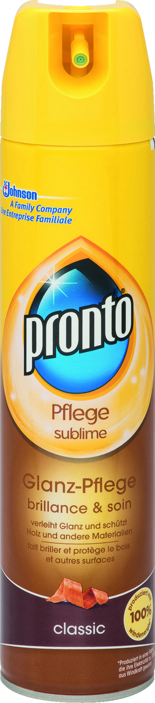 Die spezielle Formel von Pronto Holz-Flächen Classic entfernt Staub, Fingerabdrücke, Schlieren und Flecken. Es pflegt Ihre Möbel ganz besonders und sorgt für einen natürlichen Glanz, insbesondere auf Holzflächen. Vorteile: Entstaubt gründlich und lässt Oberflächen länger staubfrei aussehen – verglichen mit trockenem Staubwischen. Unterstützt den Schutz vor täglicher Abnutzung, Wasserflecken, Spritzern und anderen Flecken. Entfernt Staub und bis zu 90% der im Hausstaub enthaltenen Allergene von Haustieren. Unterstützt den natürlichen Glanz Ihrer Holzoberflächen. Entfernt Fingerabdrücke, Schlieren und klebrige Flecken.