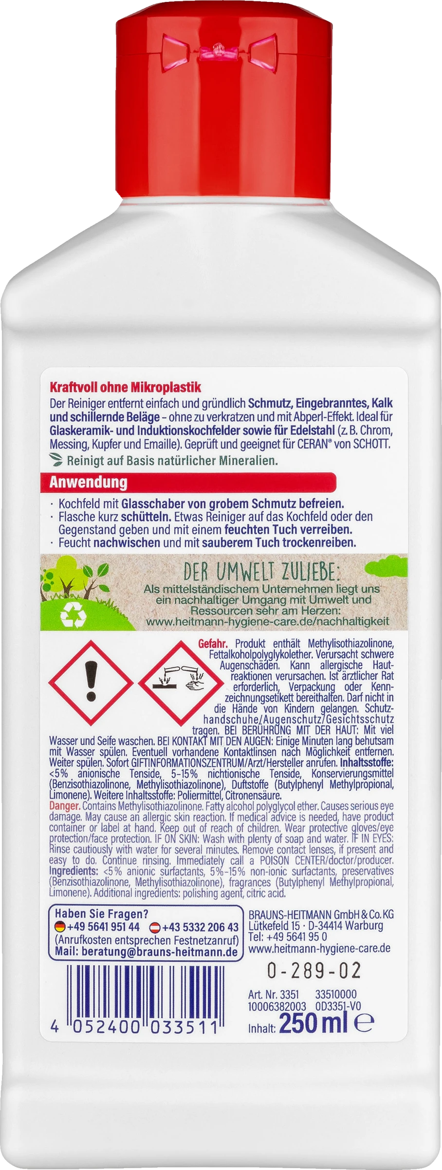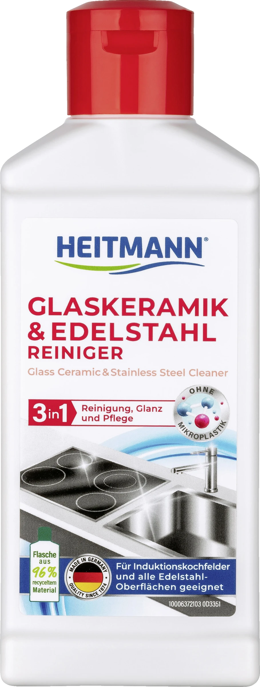 Die Anwendung des Heitmann Glaskeramik- und Edelstahl-Reiniger ist sehr einfach.