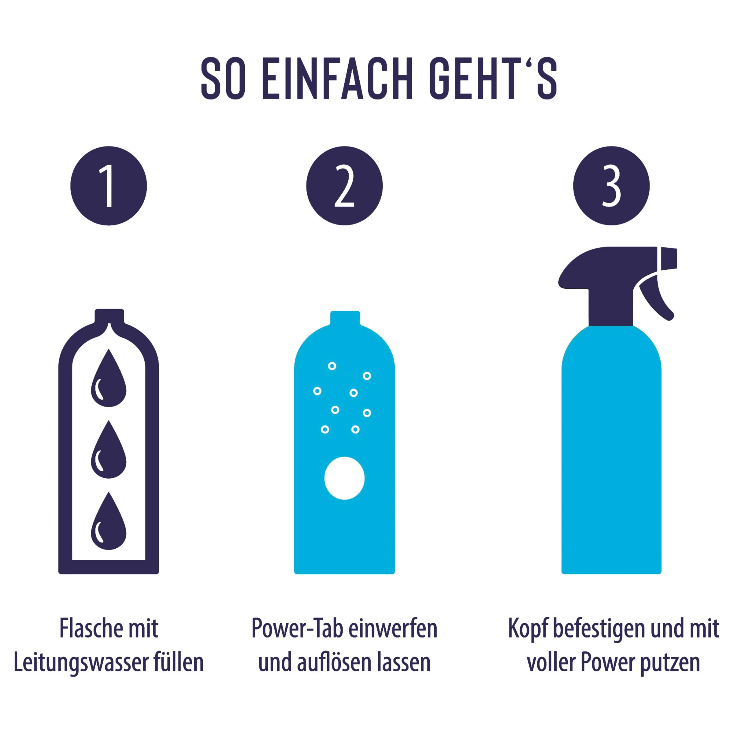 3. Sprühkopf erst nach Auflösung des PowerTabs befestigen.