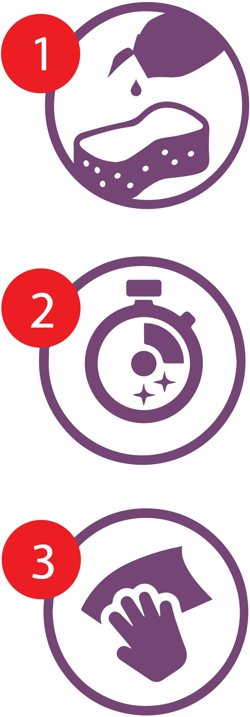 Zum Auftragen einen feuchten Schwamm oder ein feuchtes Tuch benutzen, sauber wischen und einfach abspülen. Nicht geeignet für Linoleum, Leder und Textilien. Langanhaltenden Kontakt mit behandelten Holzflächen und Aluminium vermeiden. Vor der Anwendung auf empfindlichen Oberflächen und Materialien wie lackierten Oberflächenoder Aluminium sowie bei einer neuen oder untypischen Anwendungsart zuerst an unauffälliger Stelle testen, sofort abspülen und starkes Reiben vermeiden.