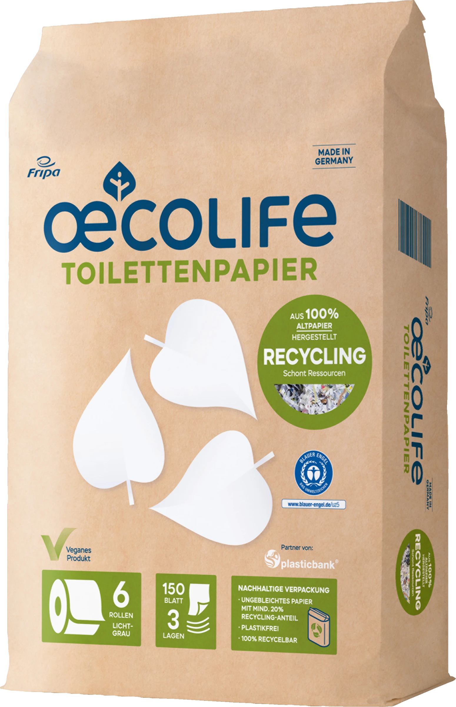 Zur Reinigung nach dem Toilettengang, Verpackung kann im Altpapier entsorgt werden – recycelbar.