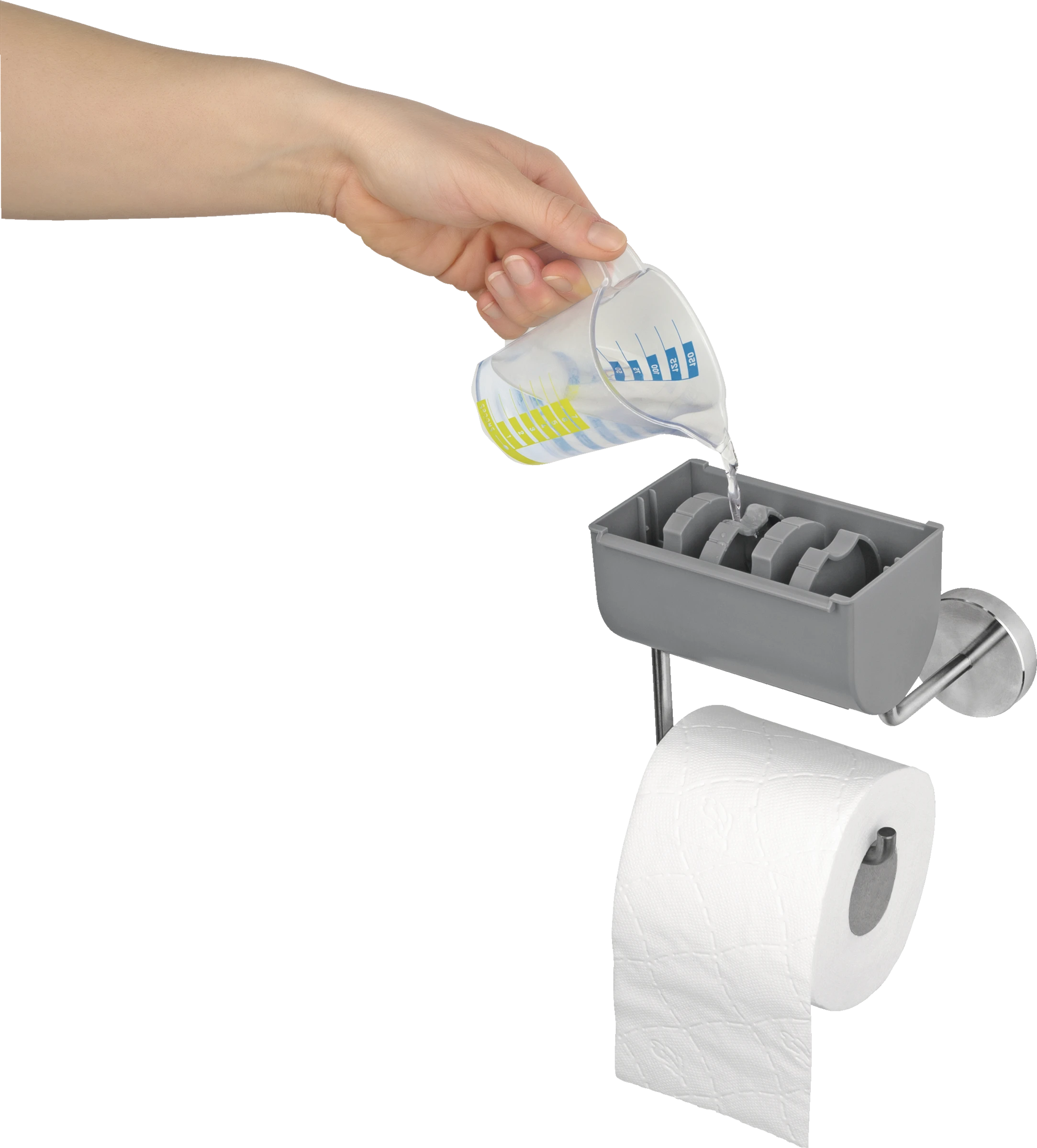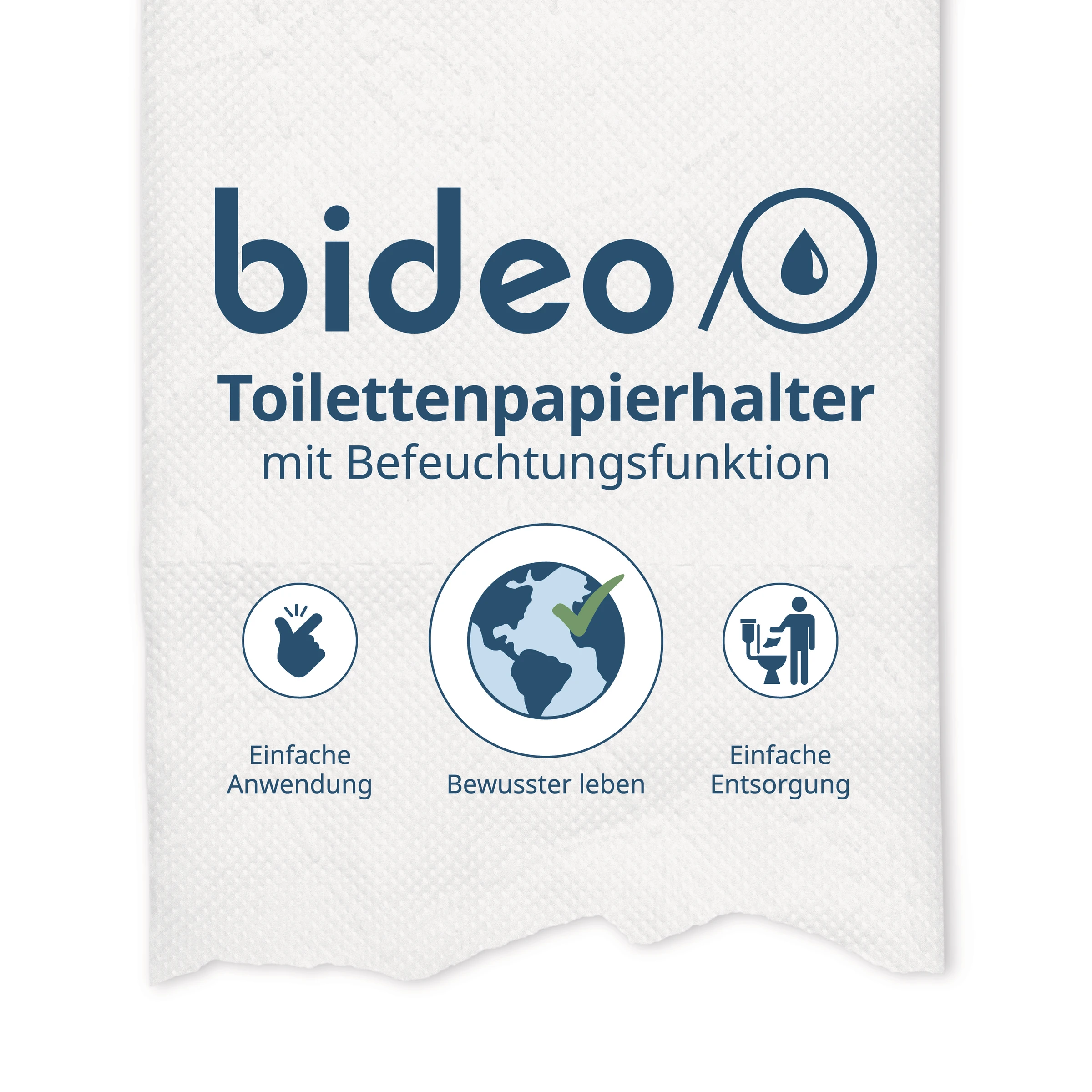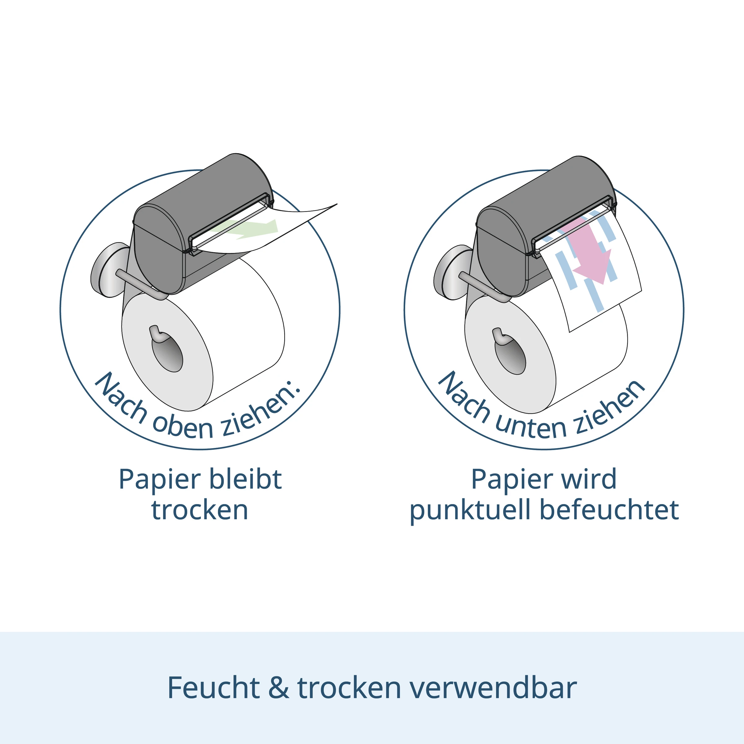 Ein frisches, sauberes Gefühl nach dem Toilettengang wünscht sich jeder – daher greifen viele Menschen gerne zu handelsüblichem feuchtem Toilettenpapier. Es hat sich jedoch gezeigt, dass die Reinigung nur mit Wasser für eine Erhaltung des natürlichen Haut-pH-Wertes optimal ist. Dafür steht bideo, ein genialer Toilettenpapierhalter mit Befeuchtungsfunktion. Mit bideo stellen Sie feuchtes Toilettenpapier ganz leicht selbst her! Durch die integrierte Walze im Toilettenpapierhalter wird das Papier beim Ziehen nach unten automatisch mit dem eingefüllten Wasser befeuchtet. Eine rundum saubere Lösung! Je nach Ziehrichtung für die Feucht- oder Trockenanwendung geeignet.