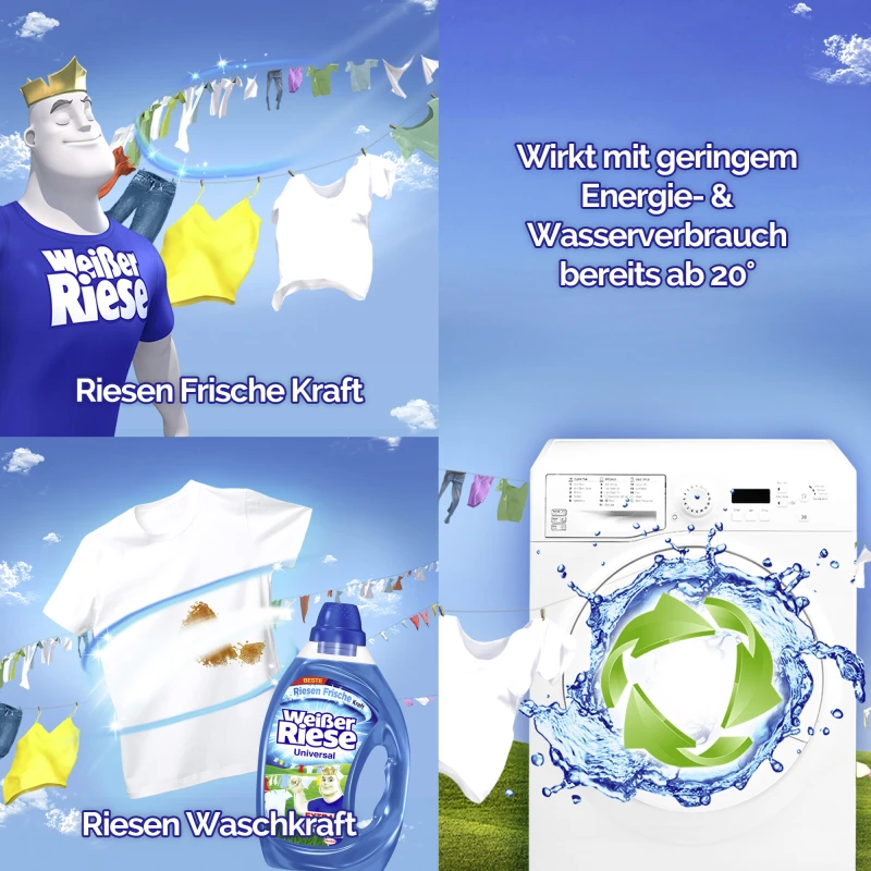 Weißer Riese Universal Gel – Universal Waschmittel für hygienisch reine und strahlend saubere Wäsche.