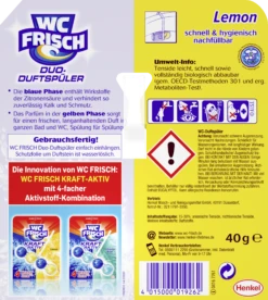 Schädlich für Wasserorganismen, mit langfristiger Wirkung. Darf nicht in die Hände von Kindern gelangen. Ist ärztlicher Rat erforderlich, Verpackung oder Kennzeichnungsetikett bereithalten. Nur in der Toilette anwenden. Nach Gebrauch Hände waschen und trocknen. Wie bei jedem Haushaltsreiniger ausgedehnten Hautkontakt vermeiden. Produktspritzer auf WC-Brillen, -Deckeln oder anderen empfindlichen Oberflächen sofort mit klarem Wasser entfernen, da es sonst zu Flecken oder Verfärbungen kommen kann.